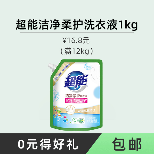 超能洁净柔护洗衣液1kg购买价:¥16.80包邮 -