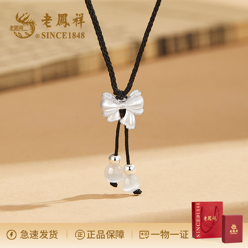老凤祥纯银925银蝴蝶结玉髓编织绳项链小众个性甜妹锁骨链LFXSK0301购买价:¥0.00包邮