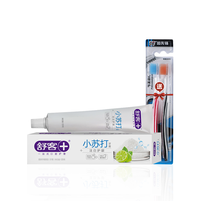 舒客牙膏小苏打牙膏美白去黄除口臭烟渍清晰口气(送健齿先锋软毛牙刷)购买价:¥0.00包邮