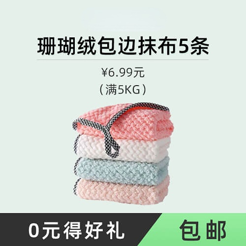 包边抹布珊瑚绒5条购买价:¥6.99包邮 -