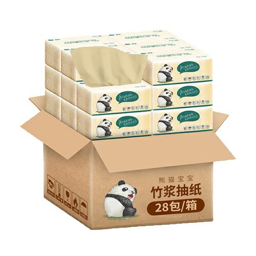 【28包】熊猫宝宝本色抽纸3层100抽/包竹浆纤维妇婴儿纸巾家用餐巾纸卫生纸