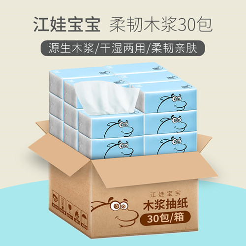 【30包】江娃蓝色系列抽纸原木竹浆本色母婴适用家用纸巾餐巾纸3层100抽