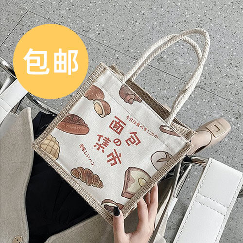 麻布印花便当包随机花色