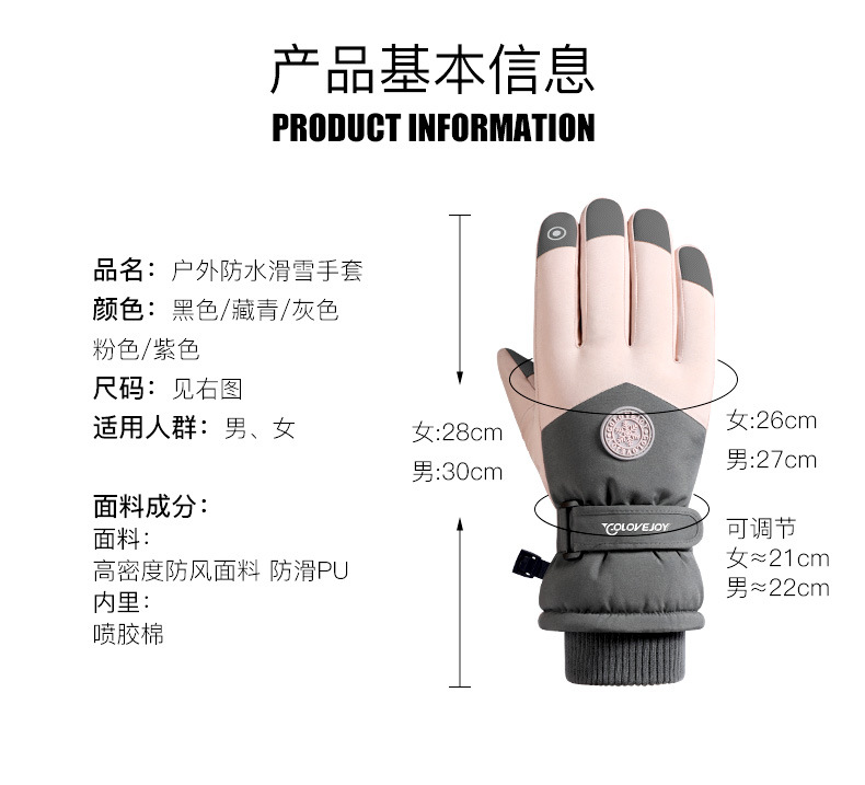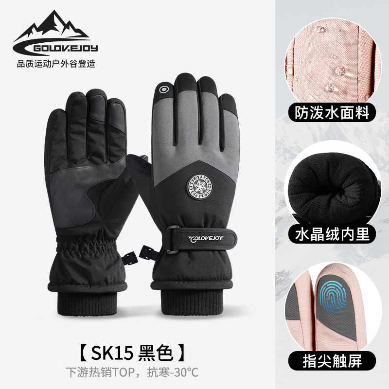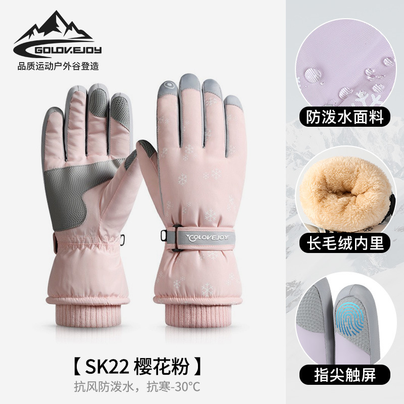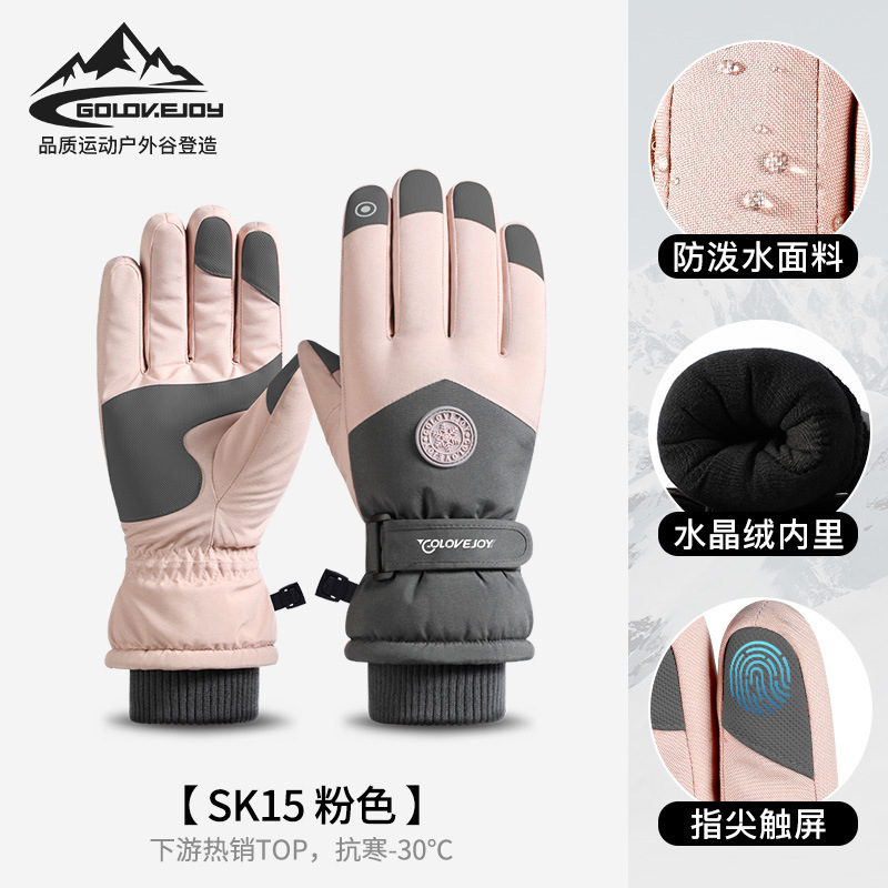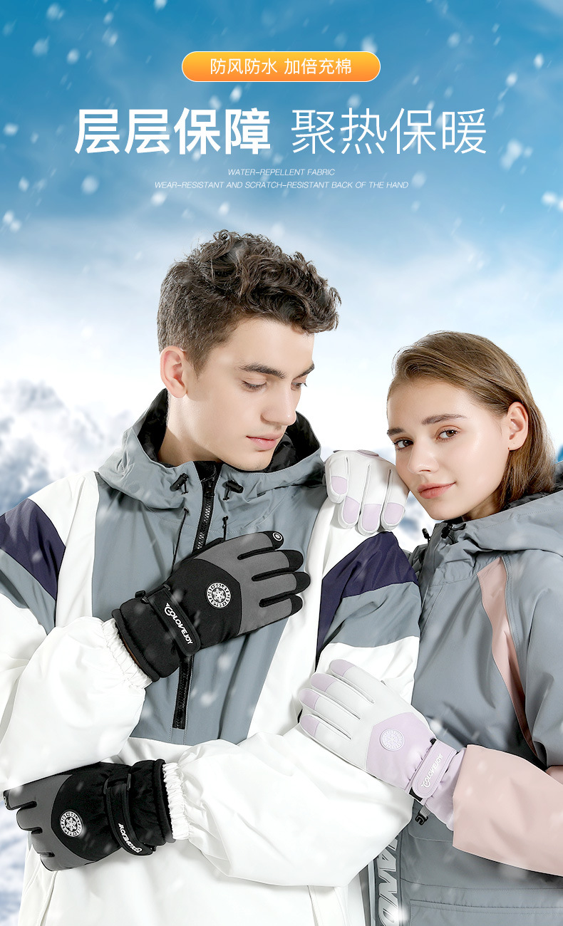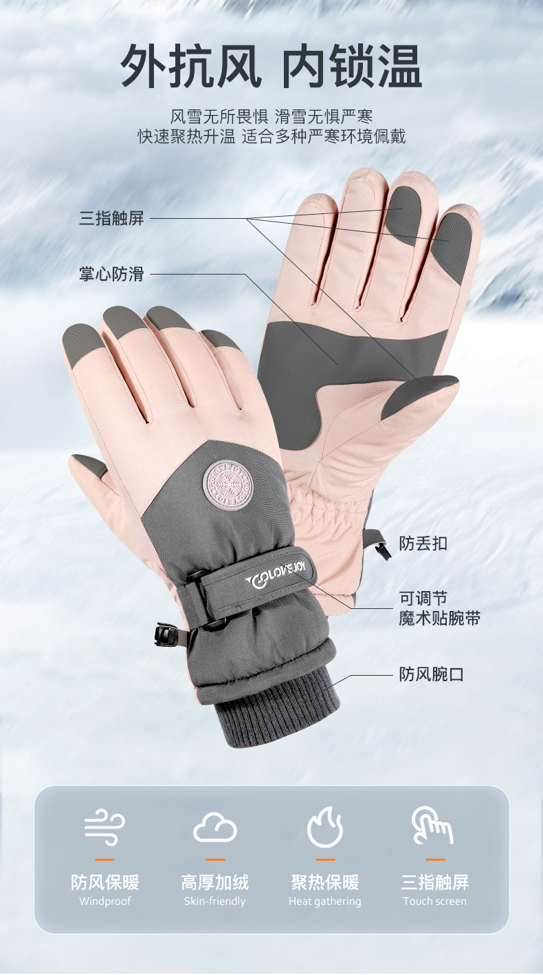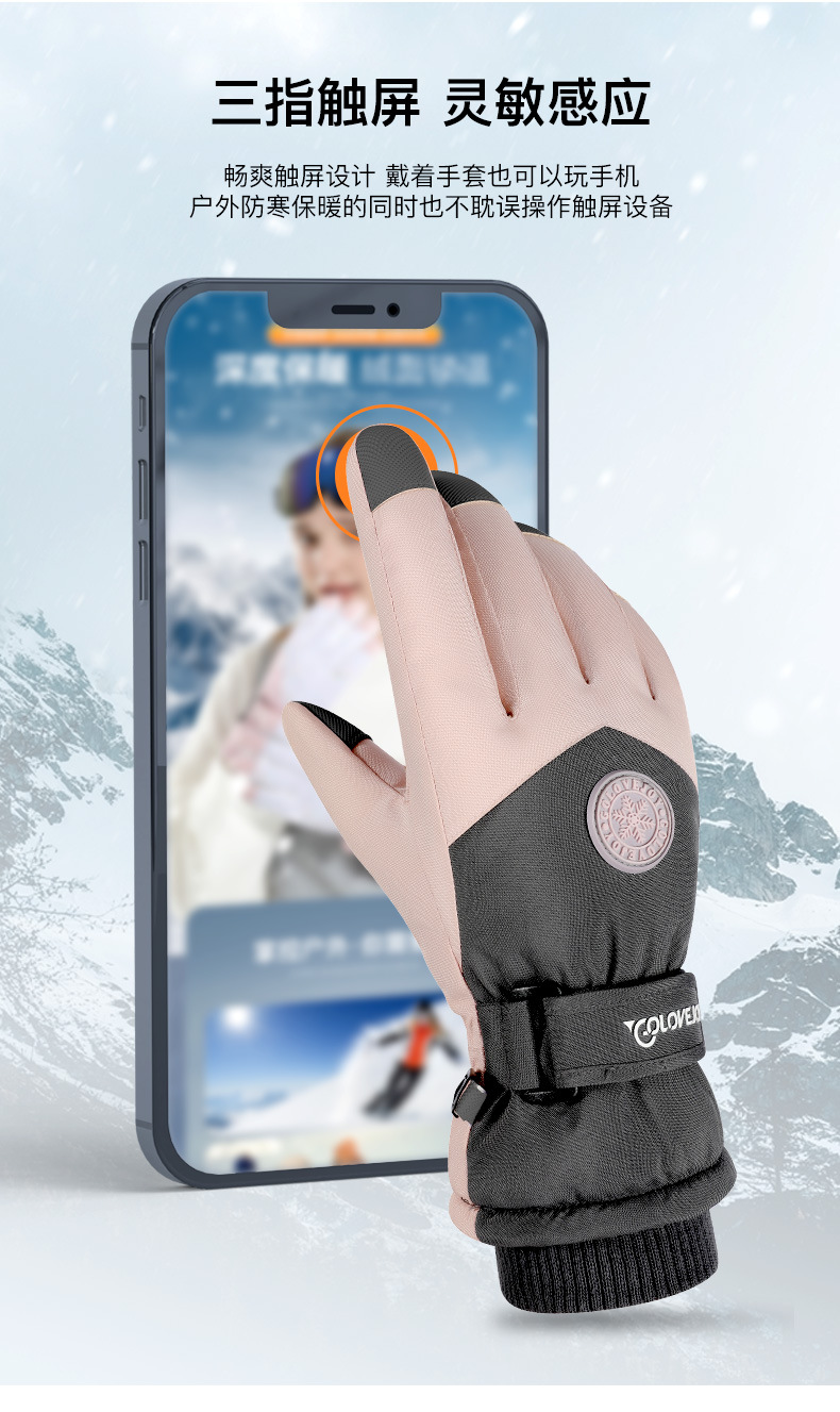 冬季滑雪保暖手套男女户外骑行触屏加绒防寒防风电动车手套