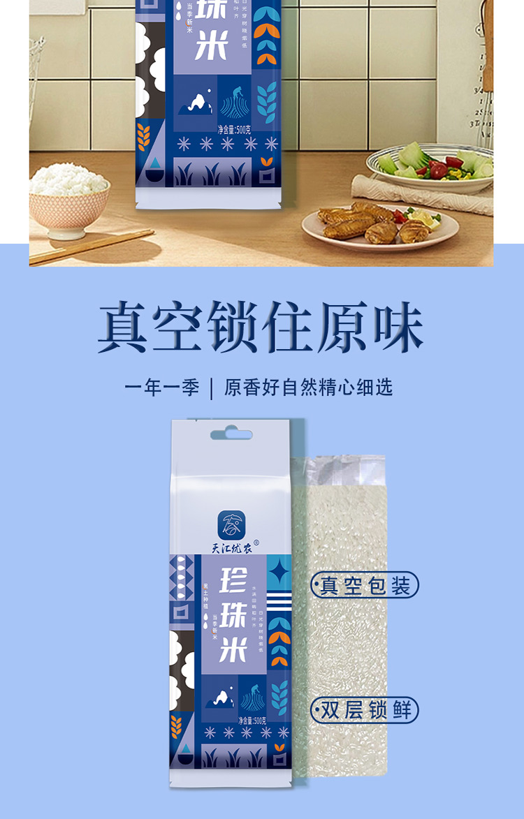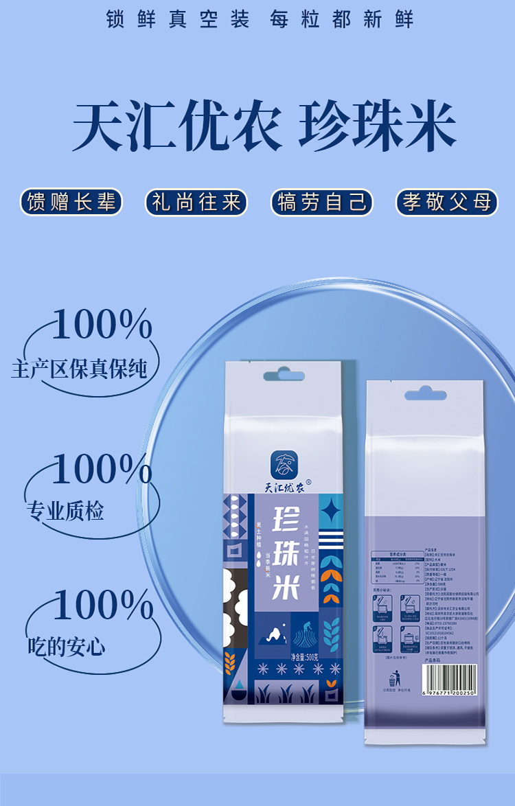 天汇优农珍珠米东北黑土有机大米油亮糯香颗粒饱满真空袋装