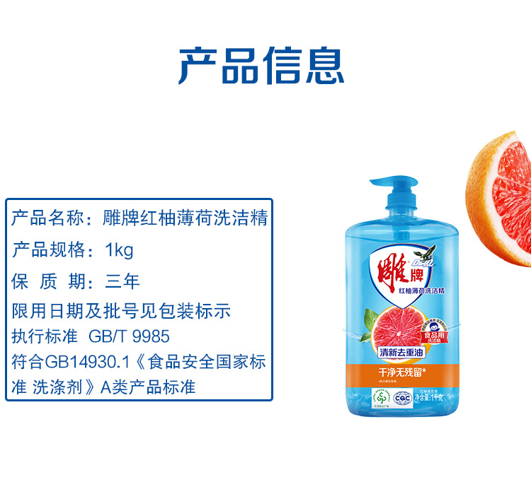雕牌红柚薄荷洗洁精1kg*1瓶