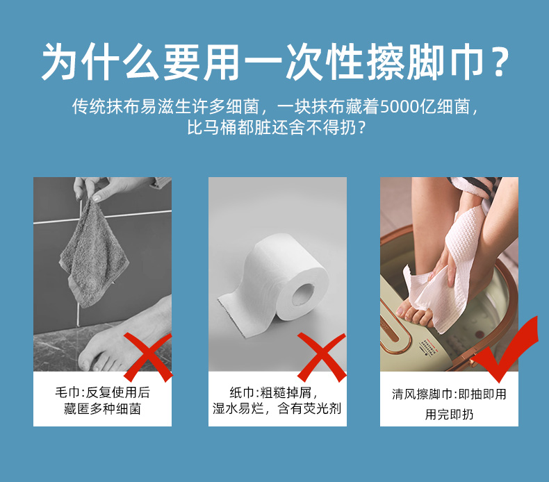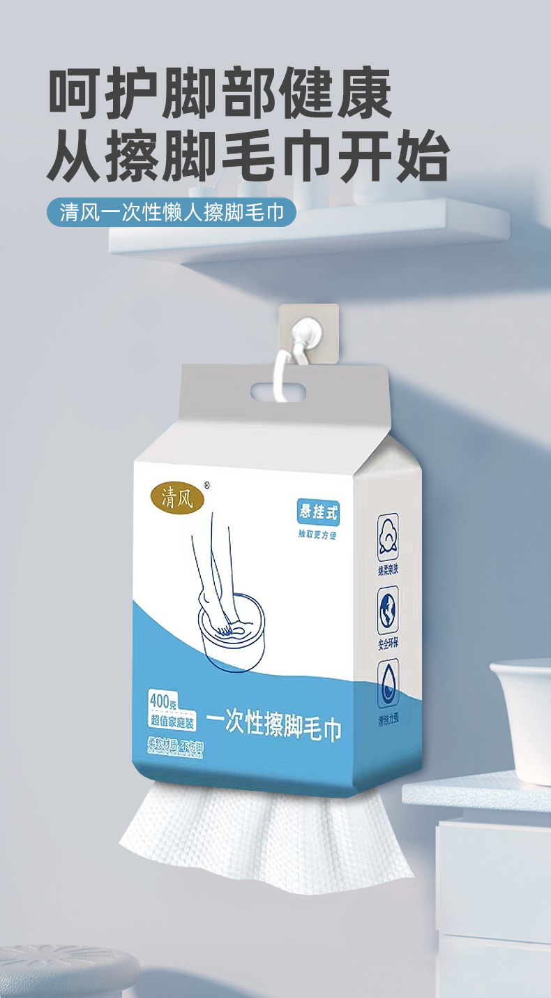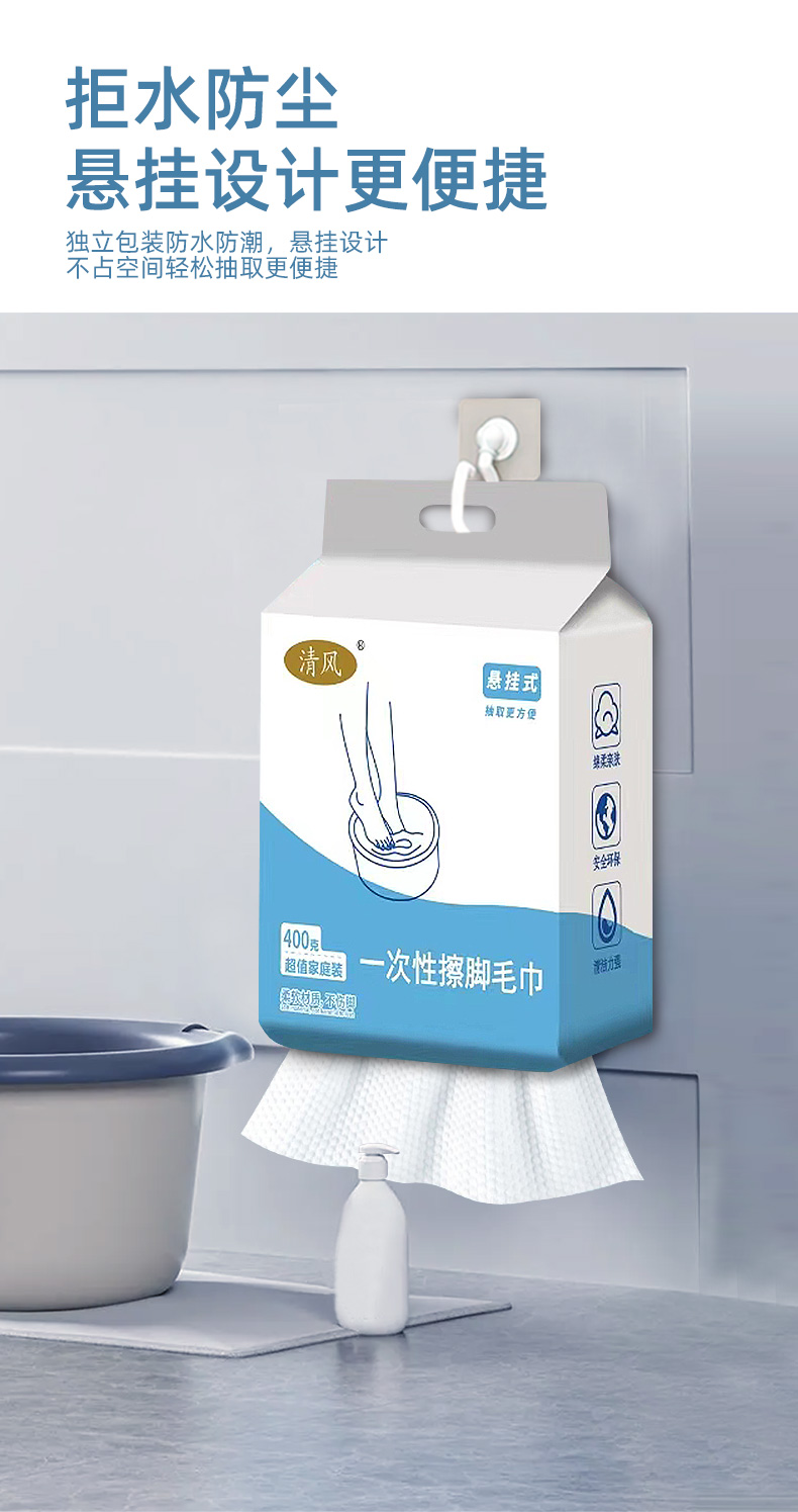 清风 一次性悬挂式擦脚巾冬天吸水快懒人家用毛巾足浴擦脚巾
