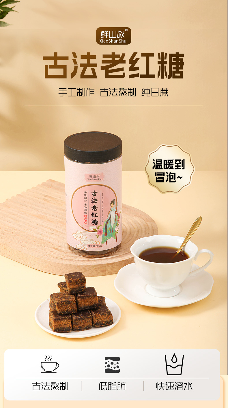 鲜山叔 甘蔗手工老红糖500g/1罐