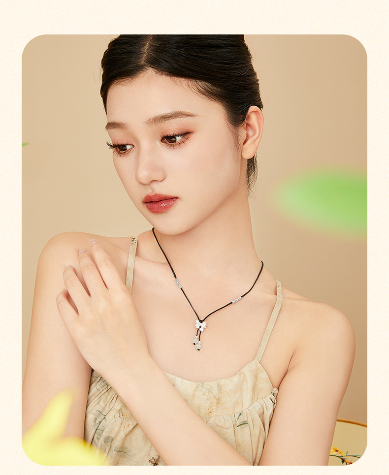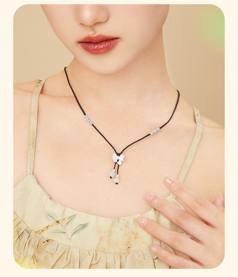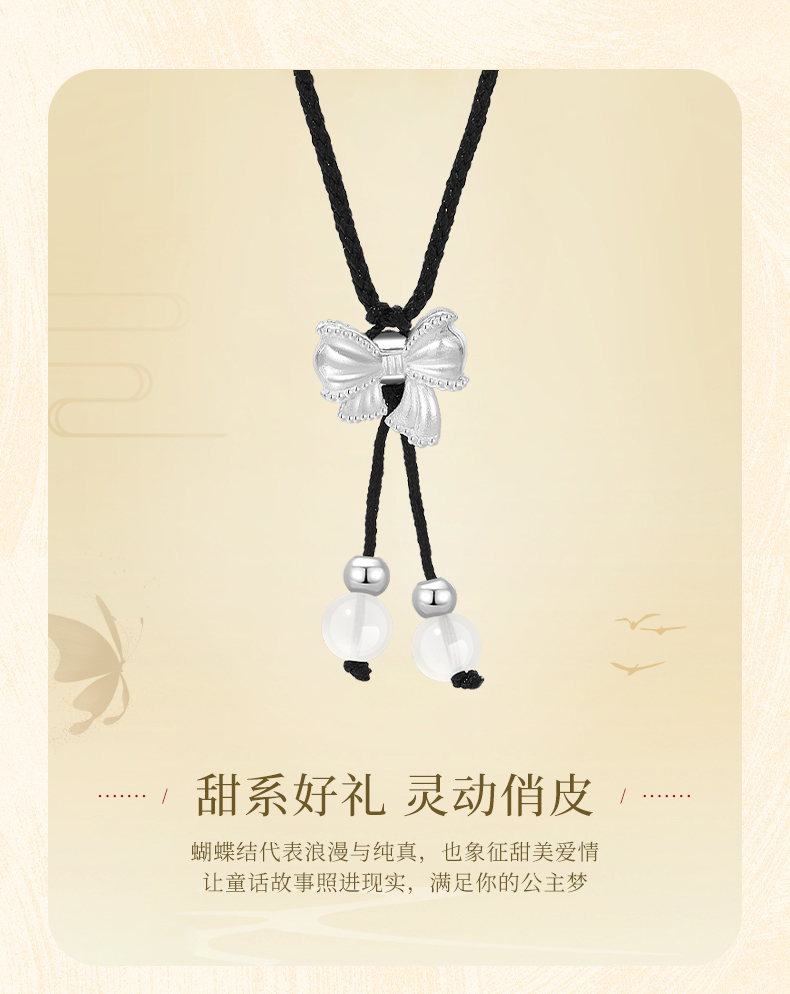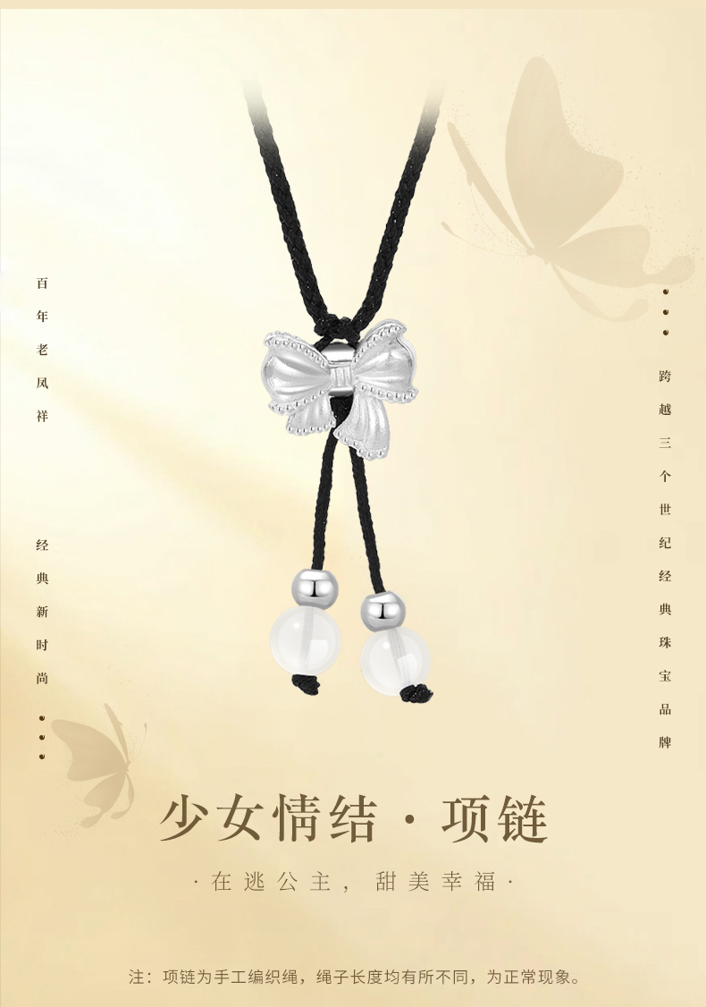 老凤祥纯银925银蝴蝶结玉髓编织绳项链小众个性甜妹锁骨链LFXSK0301