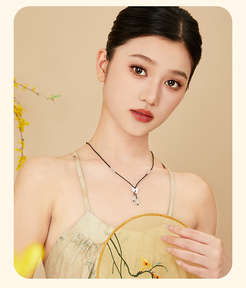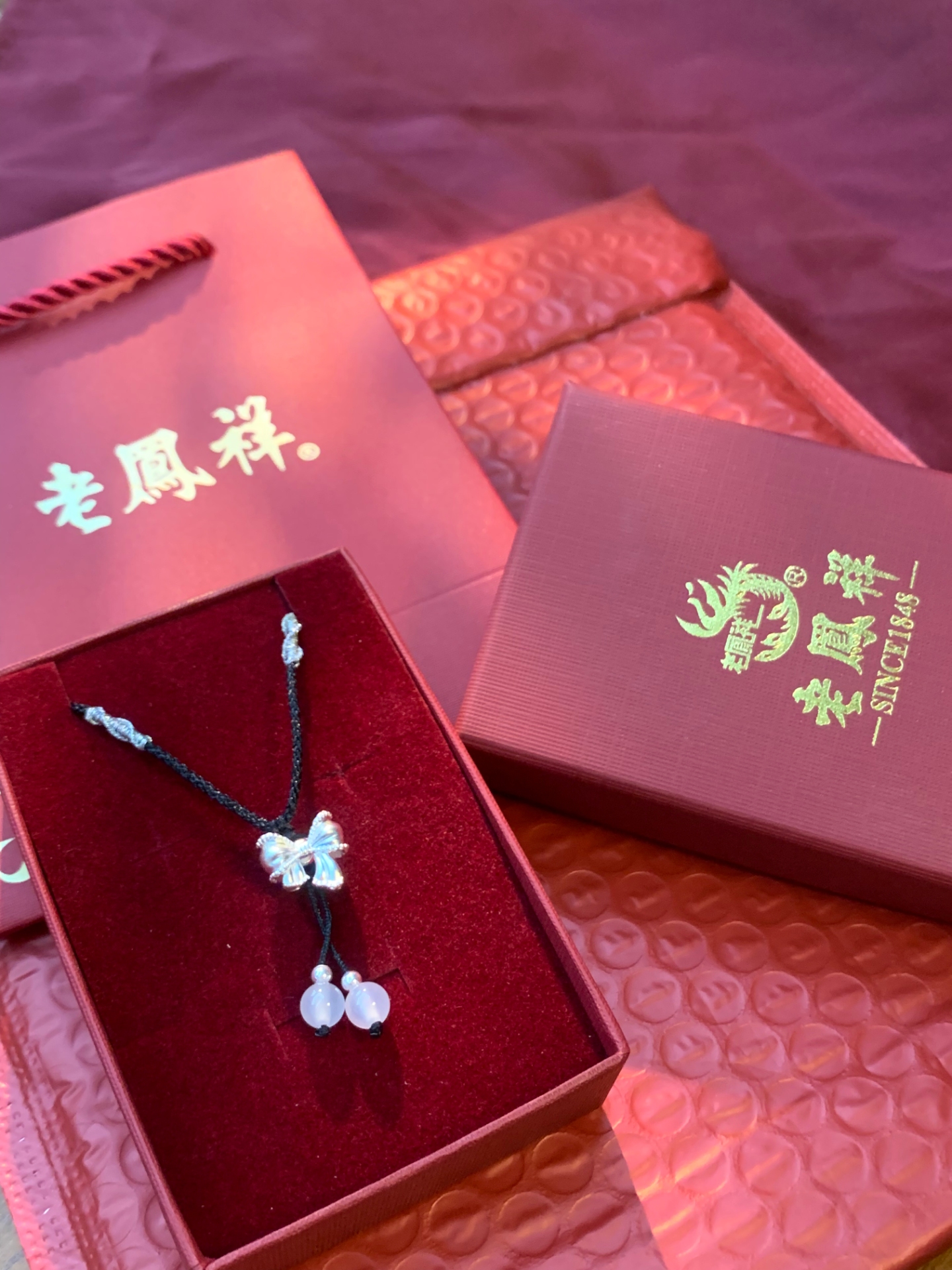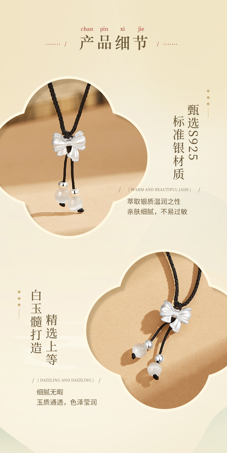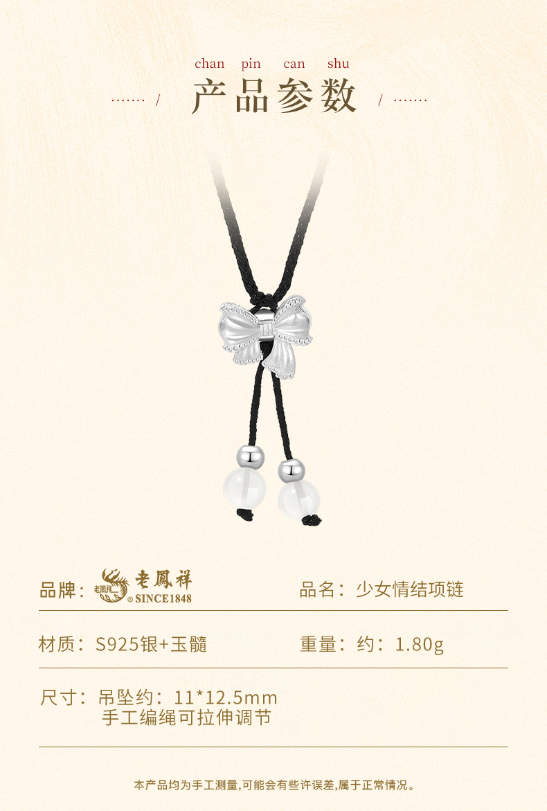 老凤祥纯银925银蝴蝶结玉髓编织绳项链小众个性甜妹锁骨链LFXSK0301