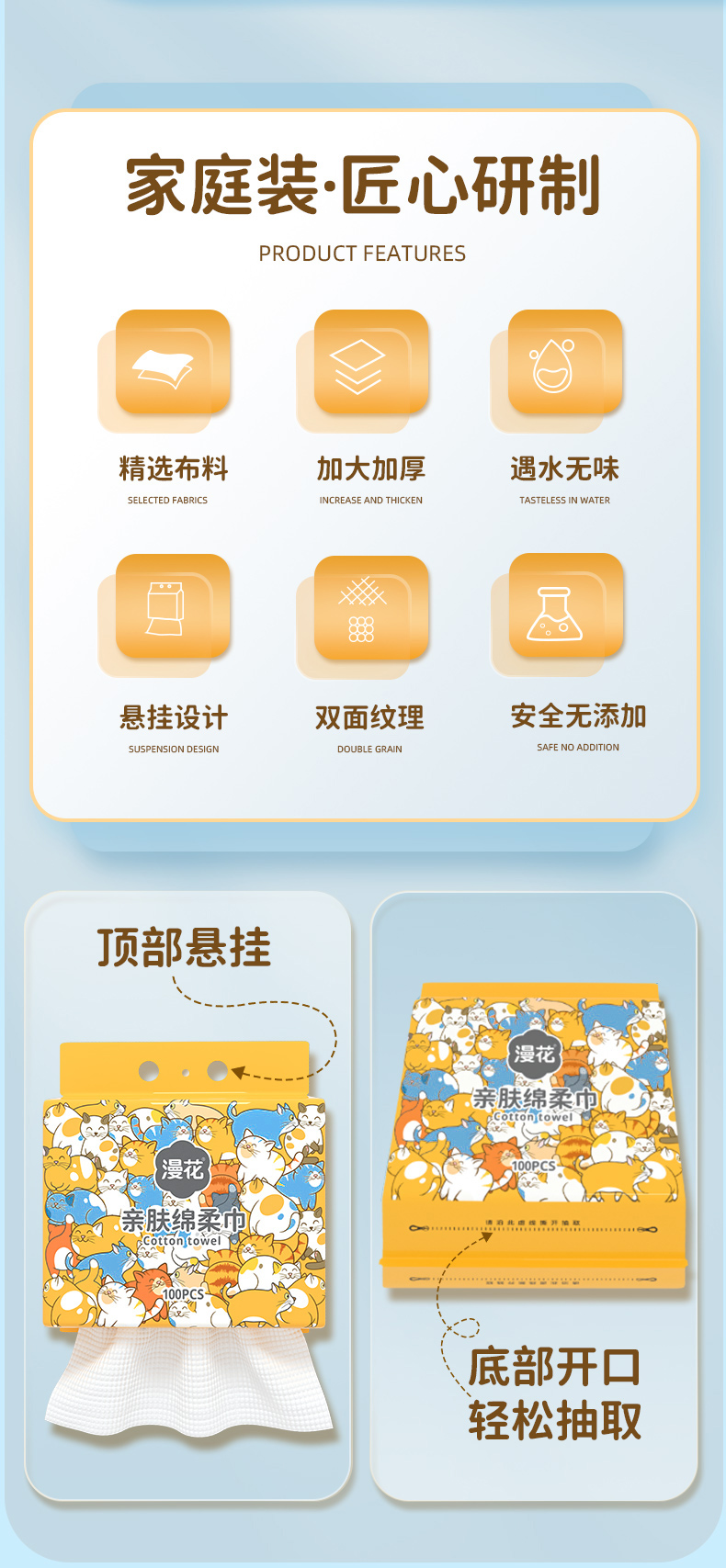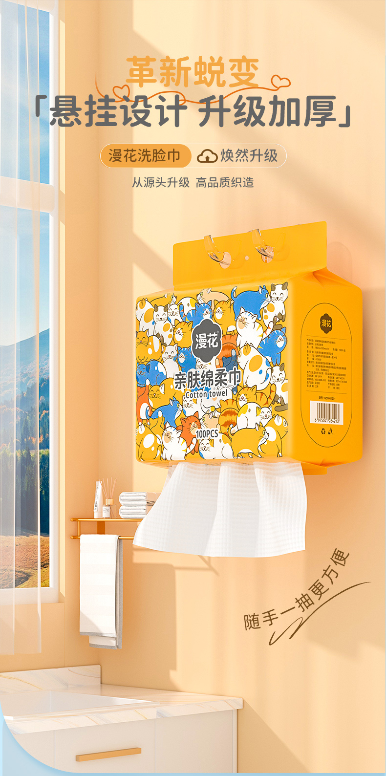 漫花爆款系列挂抽棉柔巾加厚双面纹理洗脸巾100抽GCMM100-1