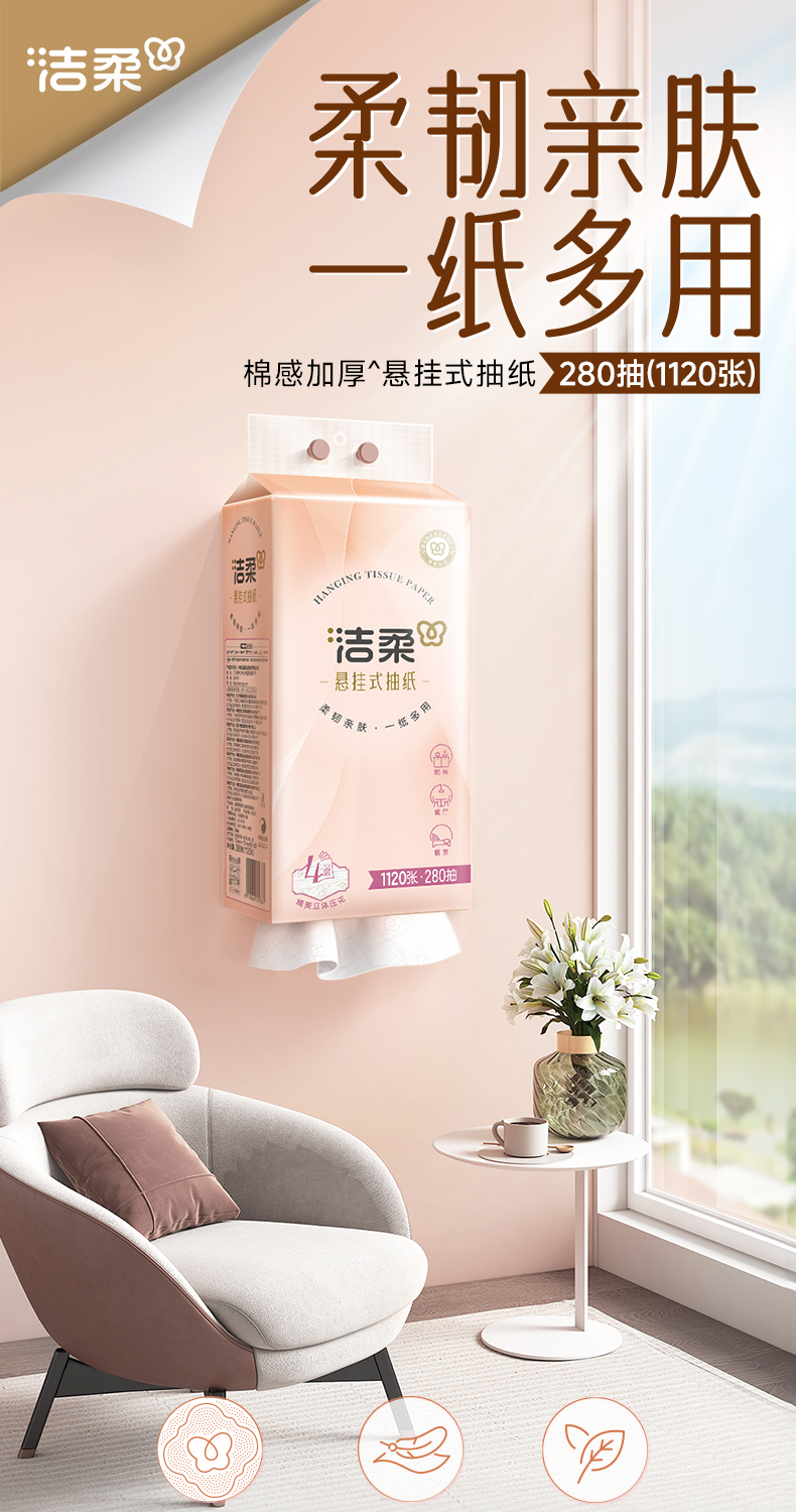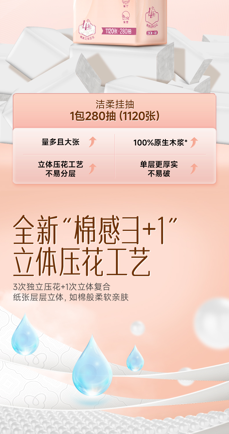 洁柔立体压花挂抽4层280抽【支付宝社群换新】