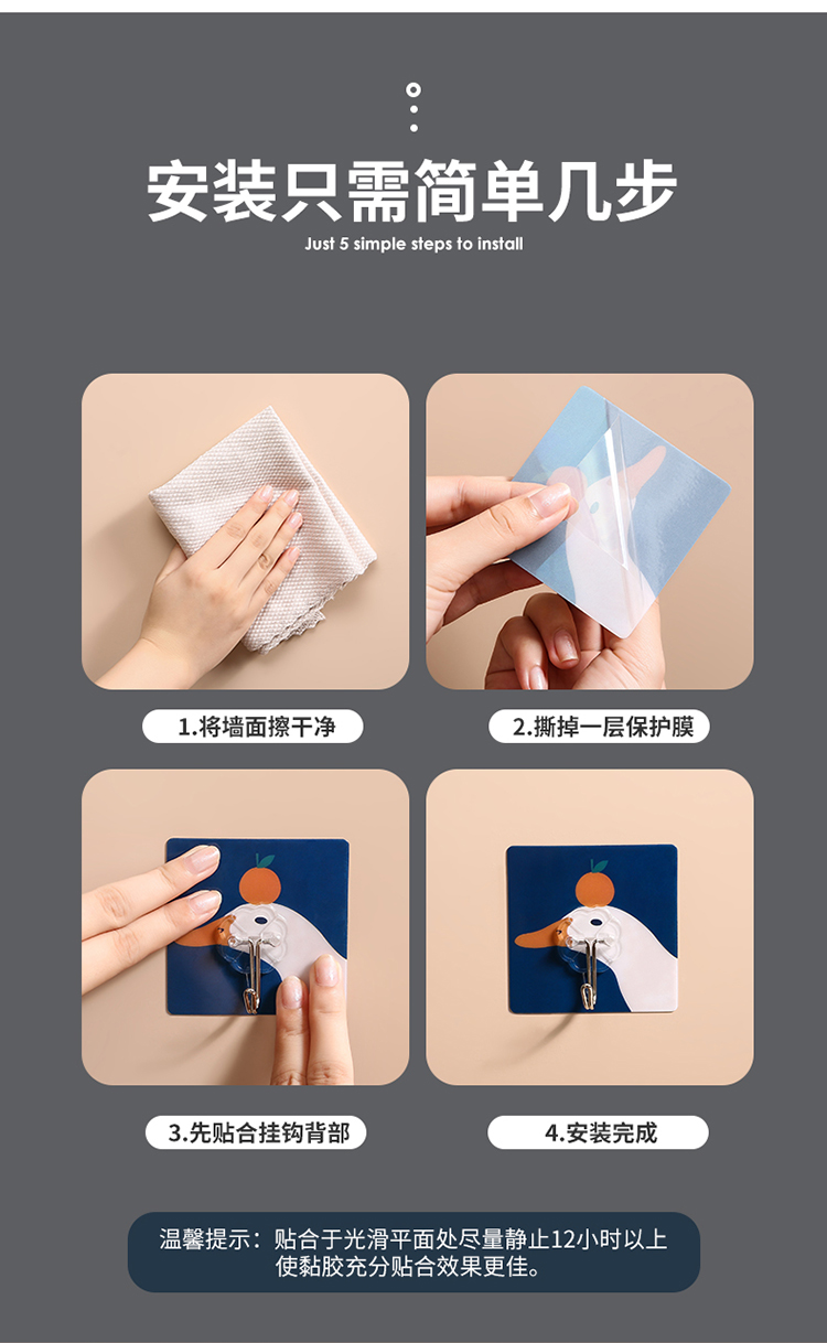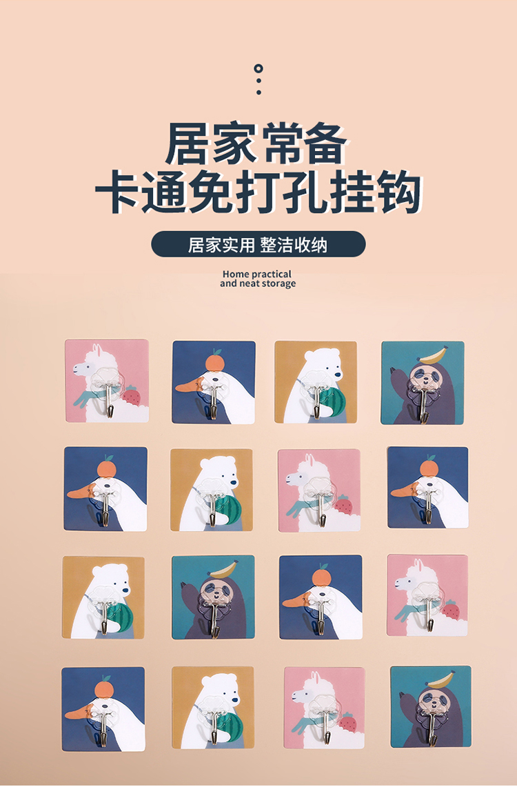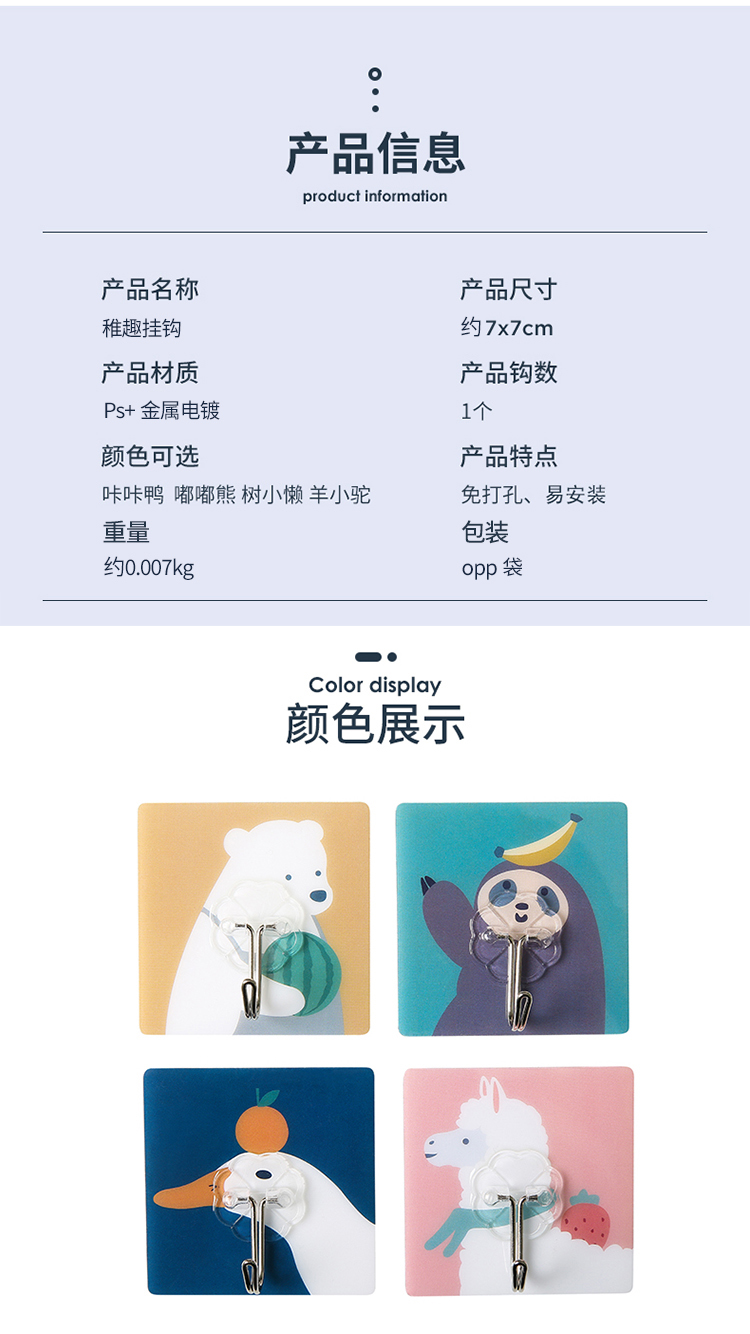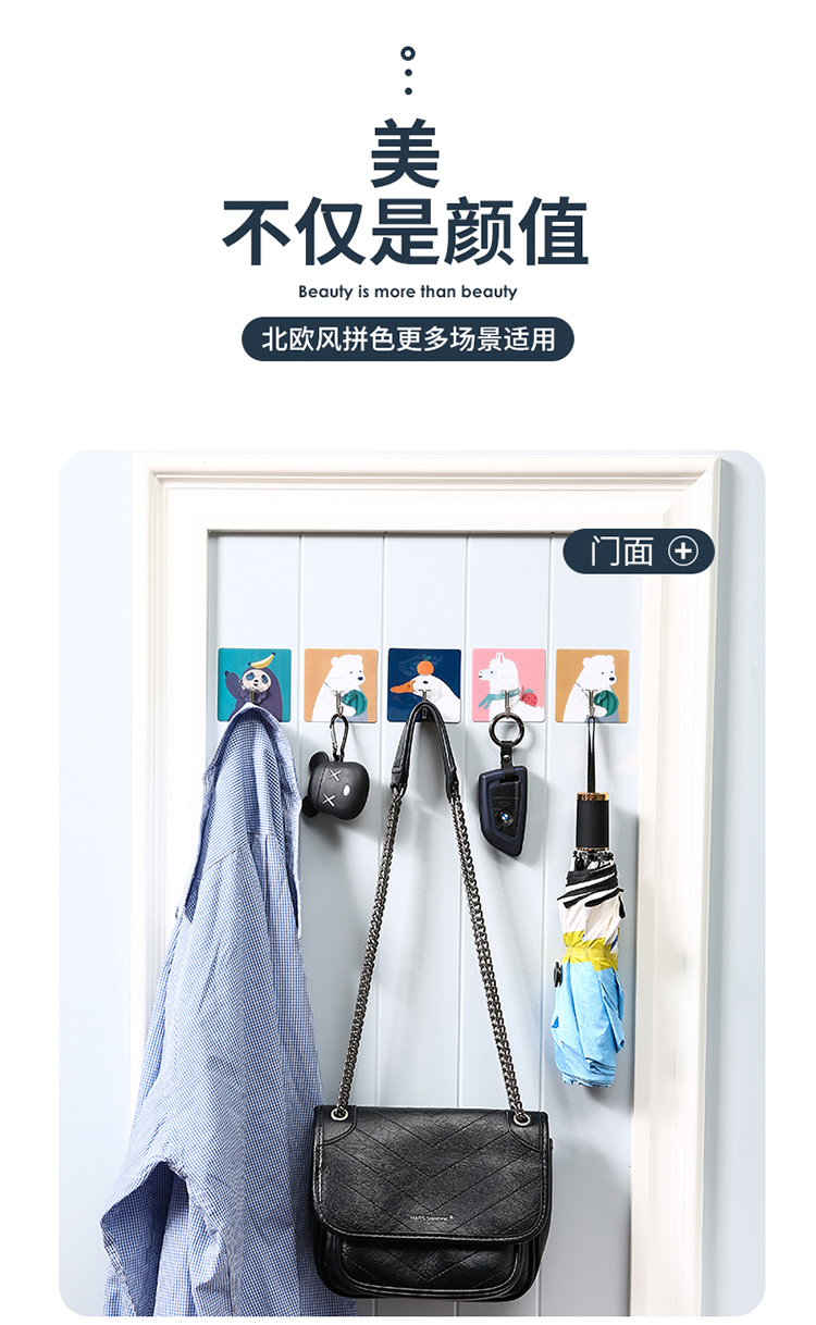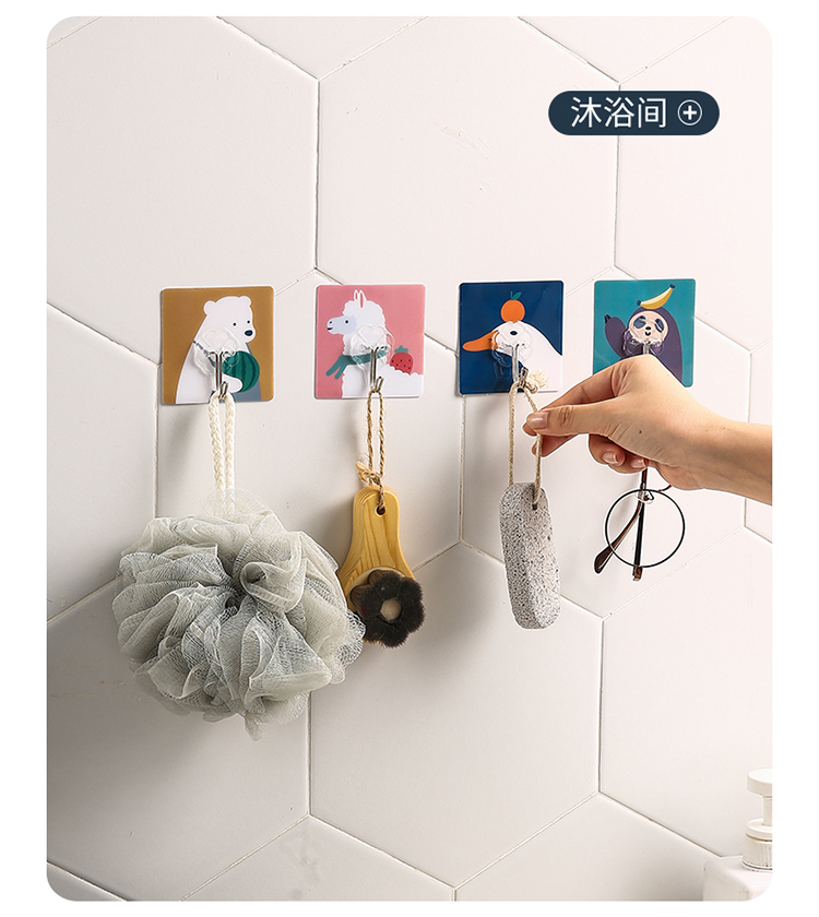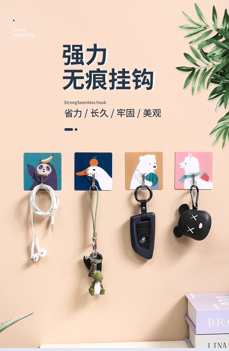 免打孔可爱卡通挂钩厨房浴室无痕贴墙壁挂强力粘胶门后钥匙包创意