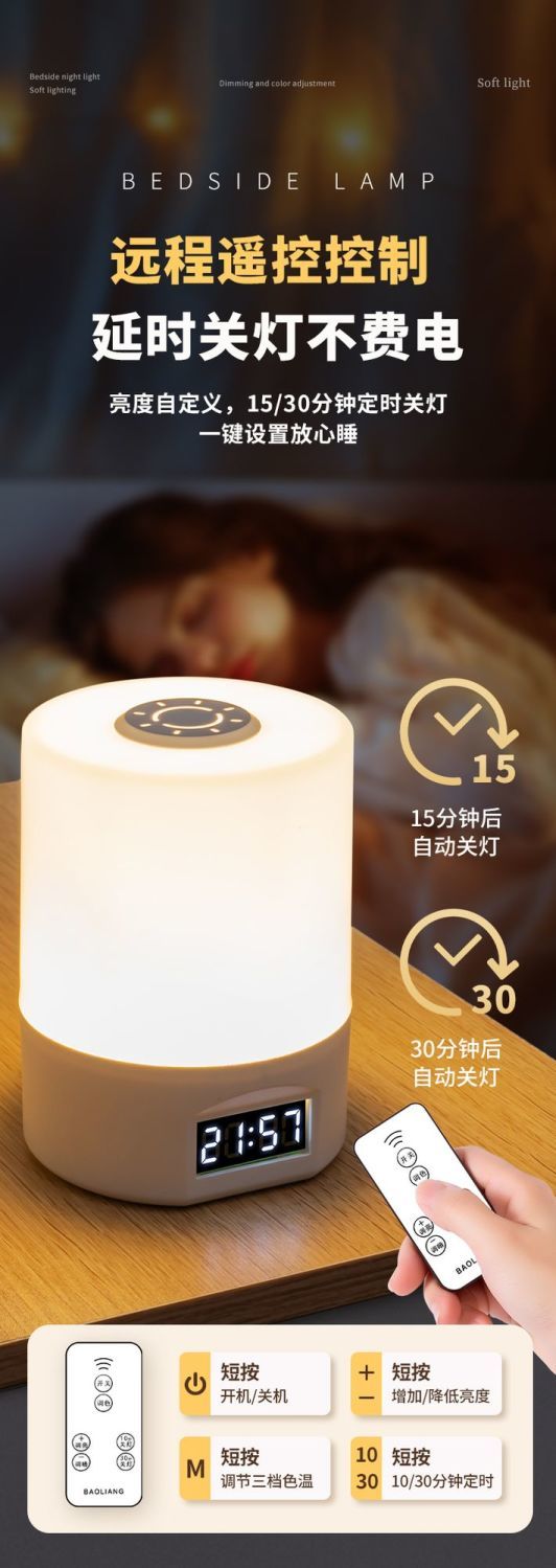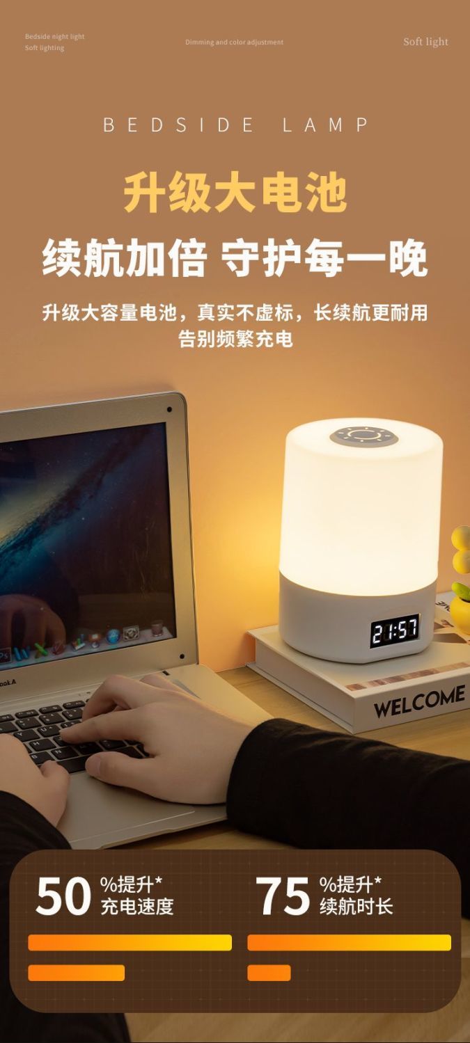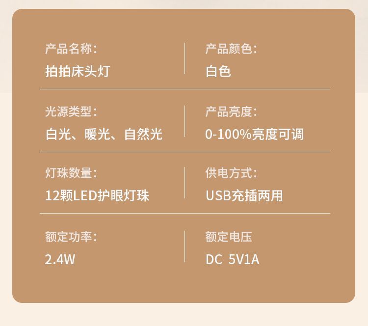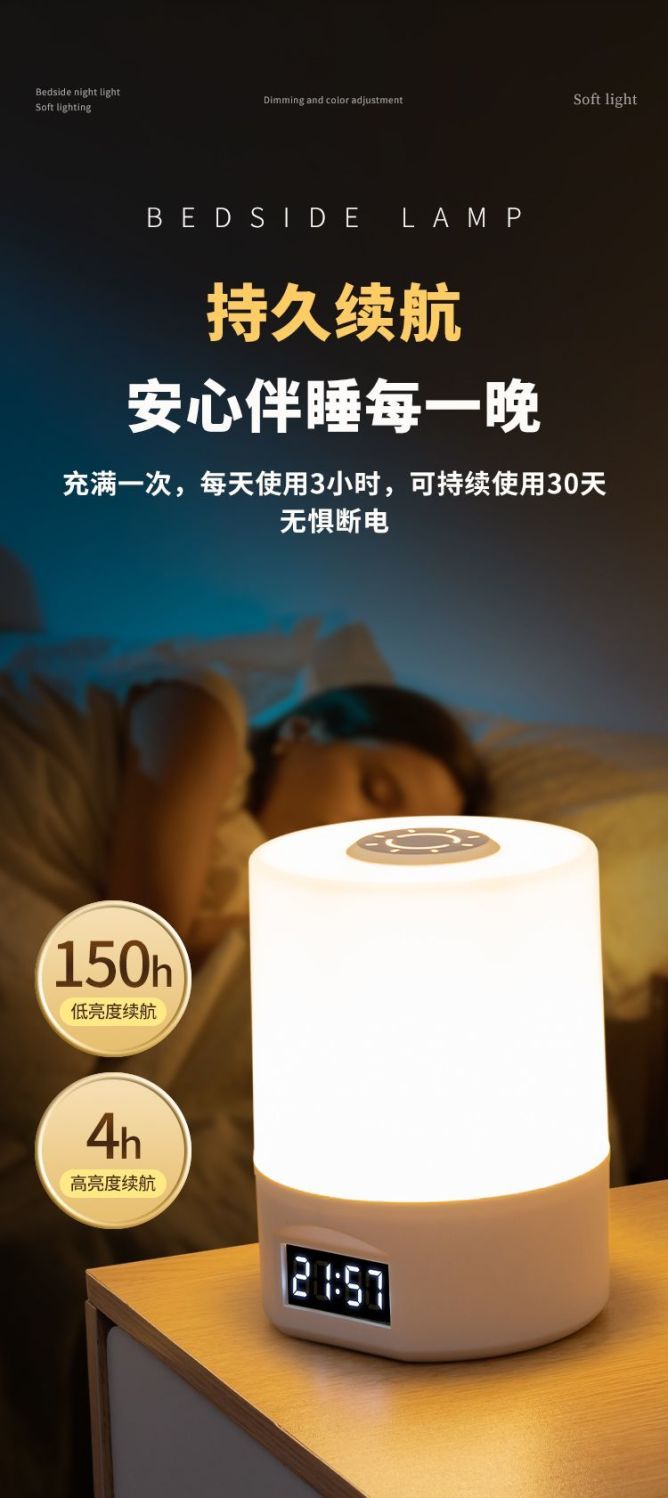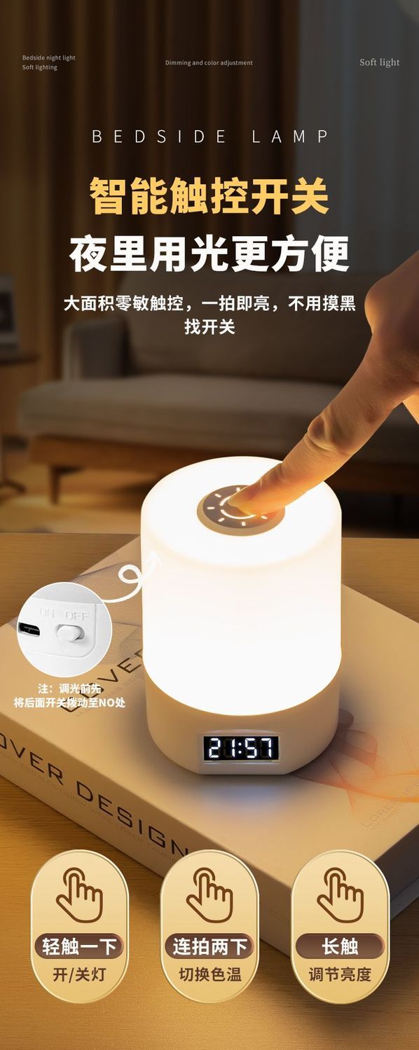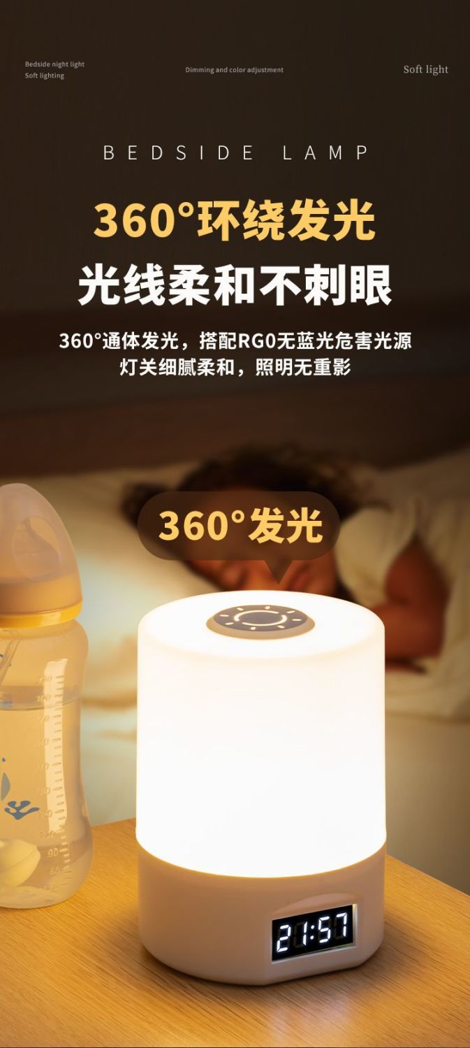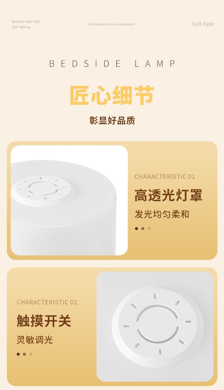 雅格充电小夜灯睡眠夜用照明拍拍灯婴儿喂奶宿舍台灯护眼床头灯