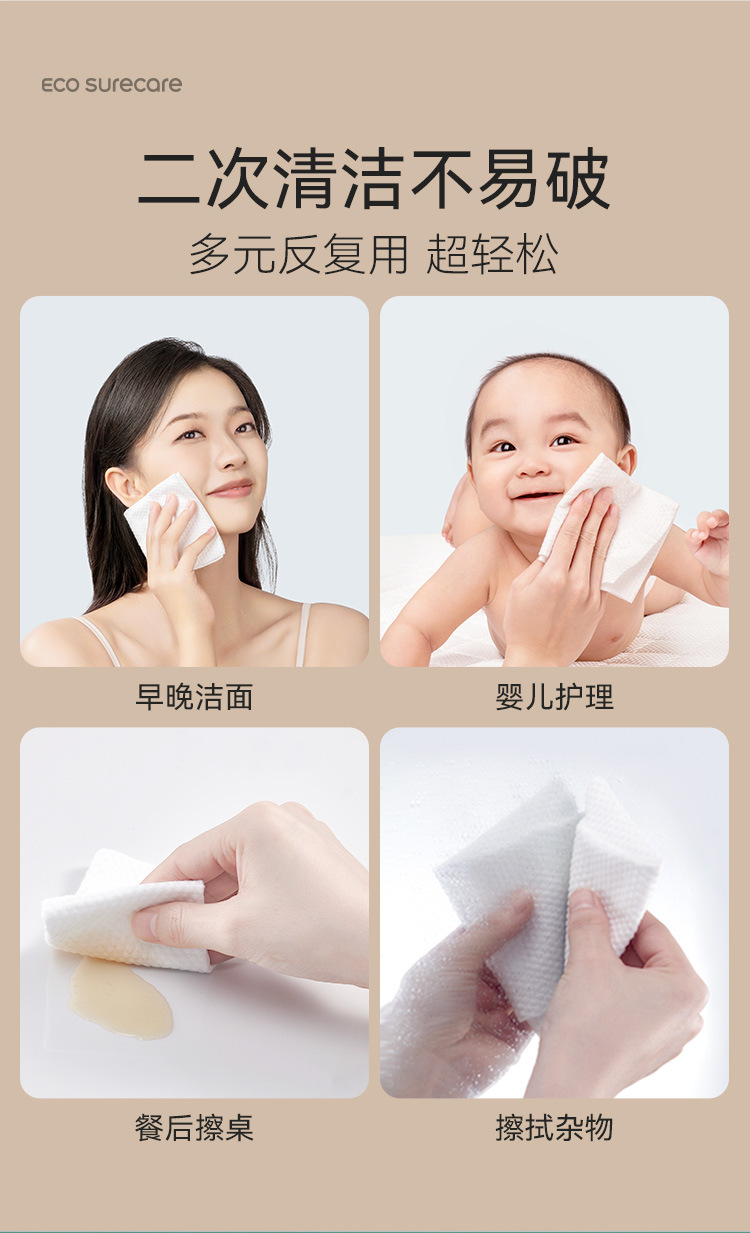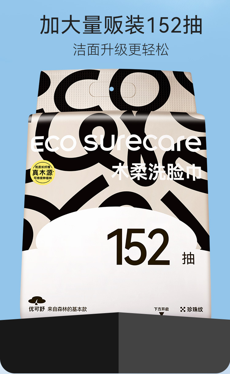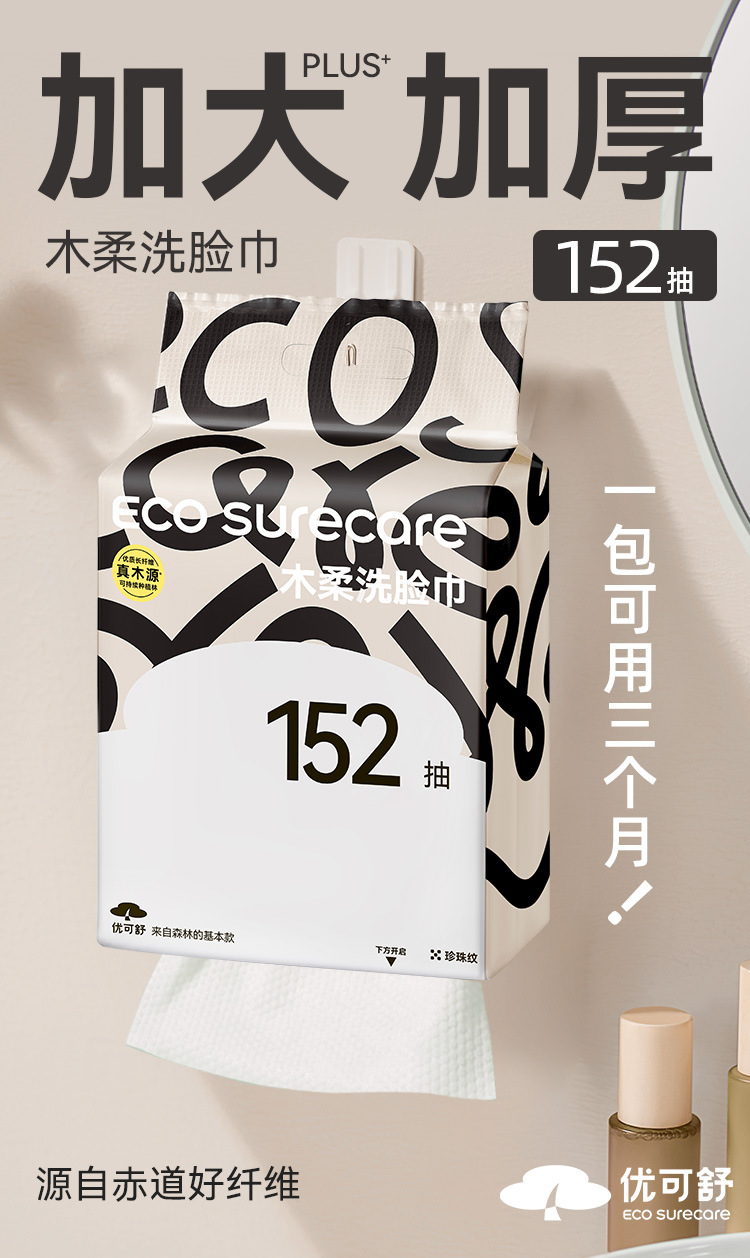 优可舒洗脸巾152抽200*180mm大尺寸加厚棉柔巾一次性卸妆纸洁面巾