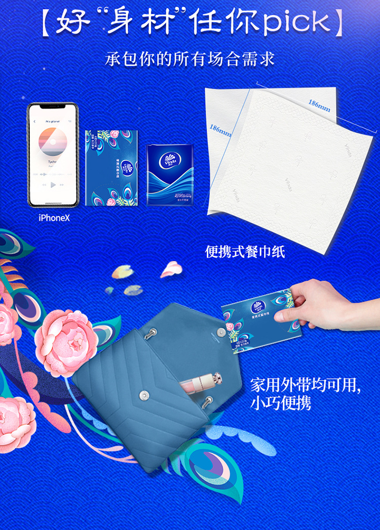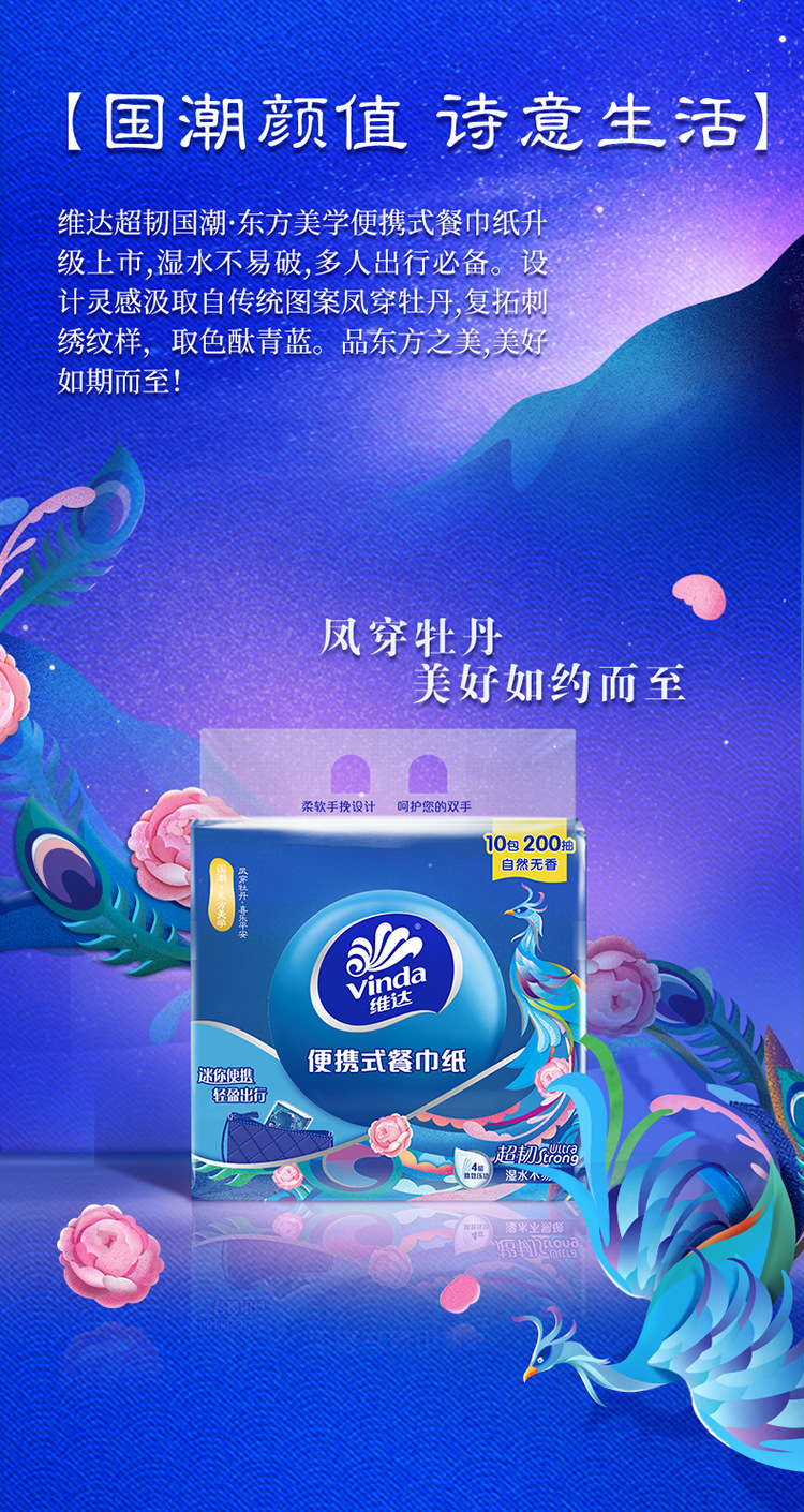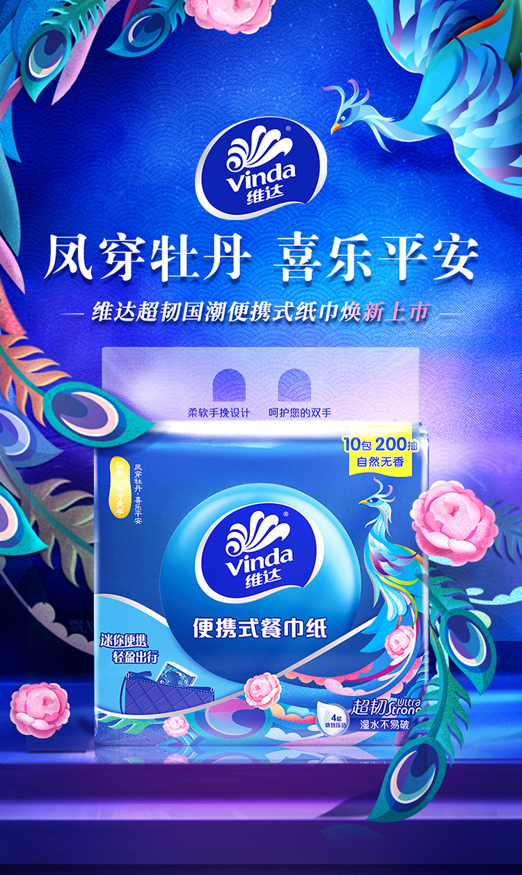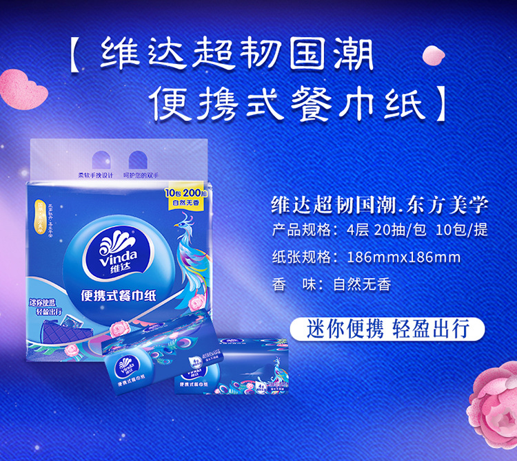 【超划算】维达20抽4层(国潮-凤穿牡丹)便携装抽纸10包1提