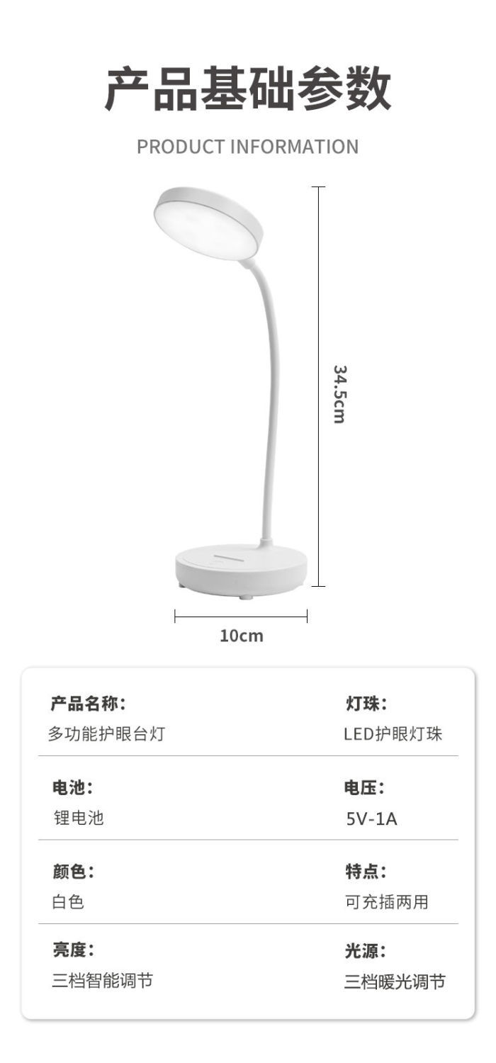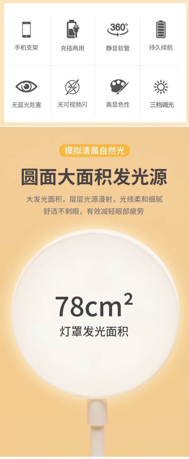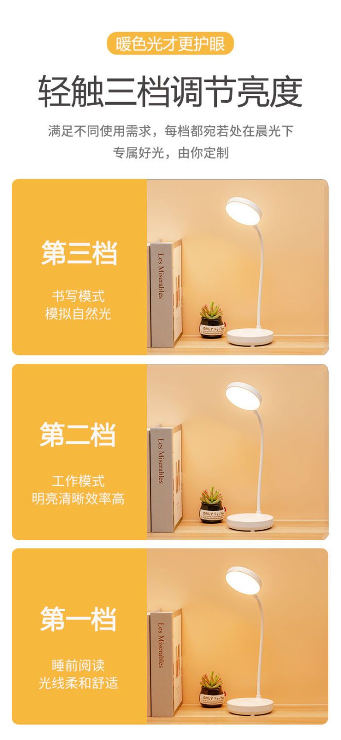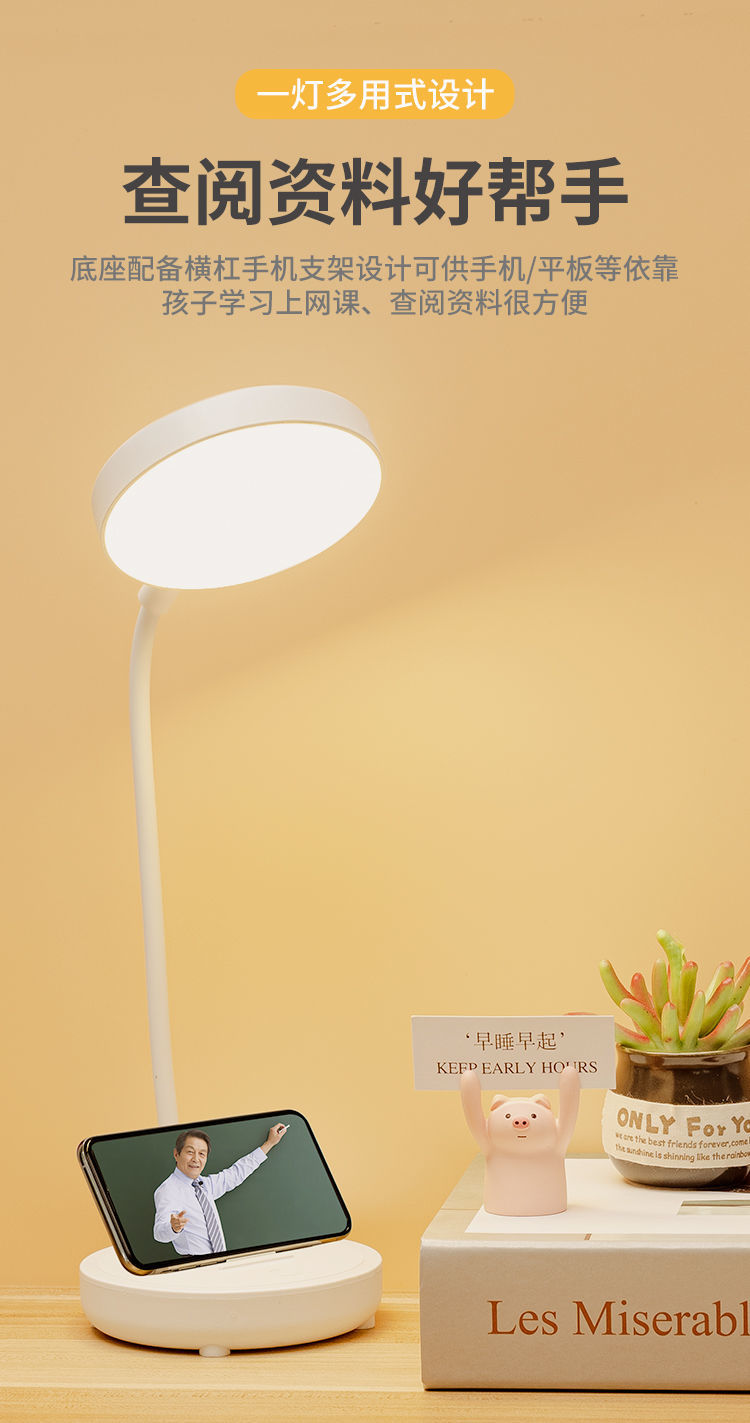 雅格LED台灯护眼阅读灯可充电插电大学生宿舍灯儿童卧室床头灯