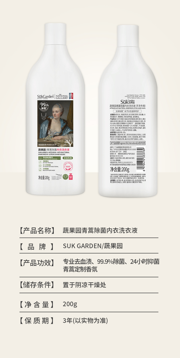 蔬果园青蒿除菌内衣洗衣液200g*3瓶/5瓶