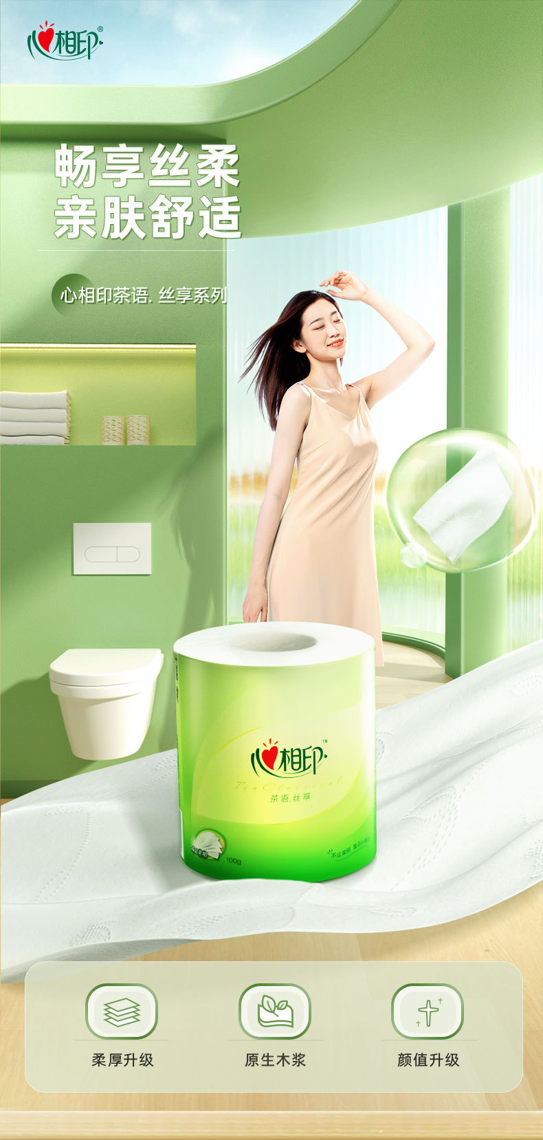 【心相印】茶语丝享100克有芯卷纸