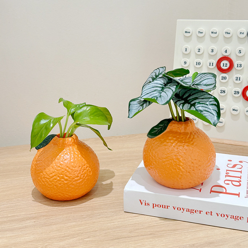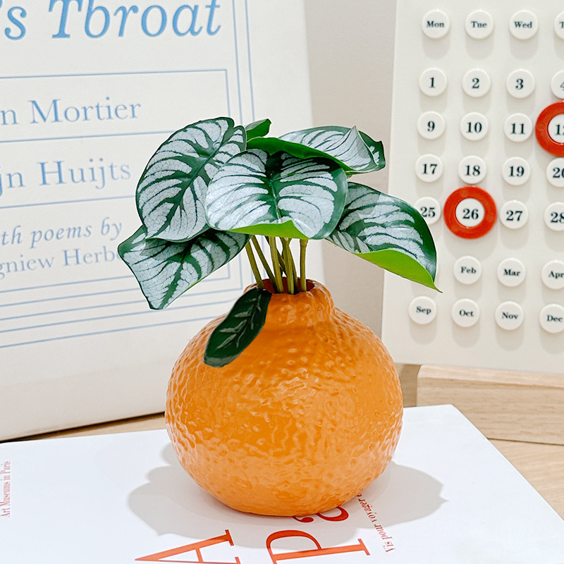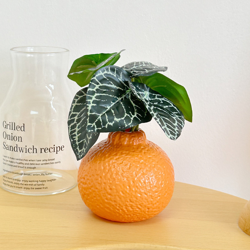 仿真橘子小花瓶摆件客厅插花水培植物鲜花绿萝高颜值桌面装饰摆件