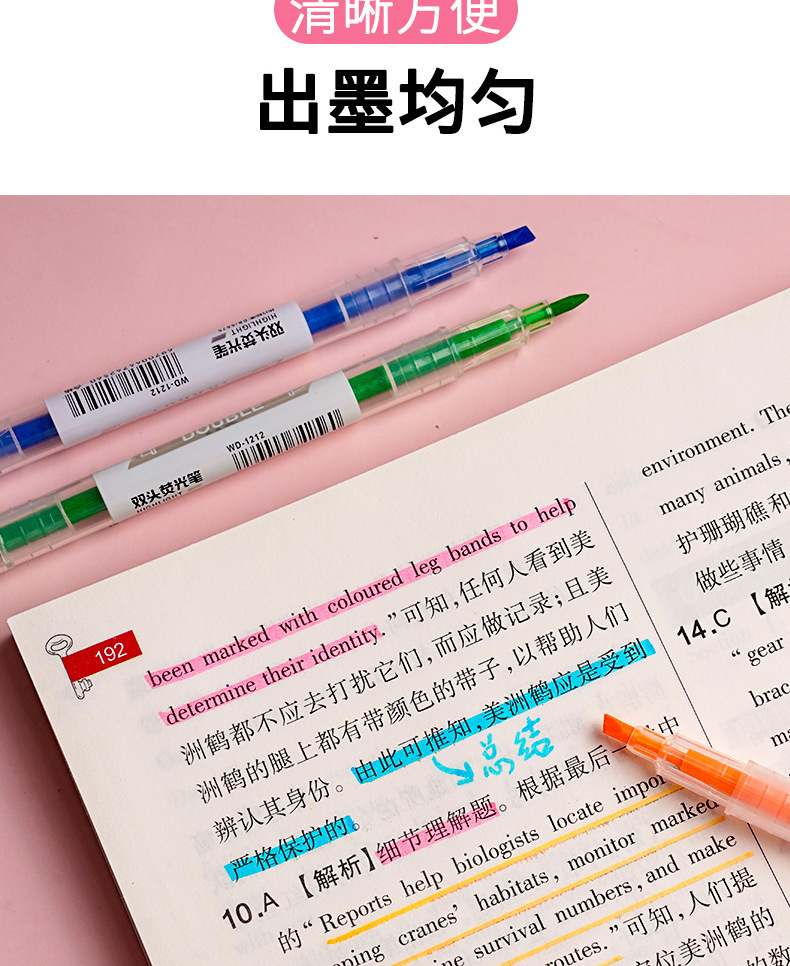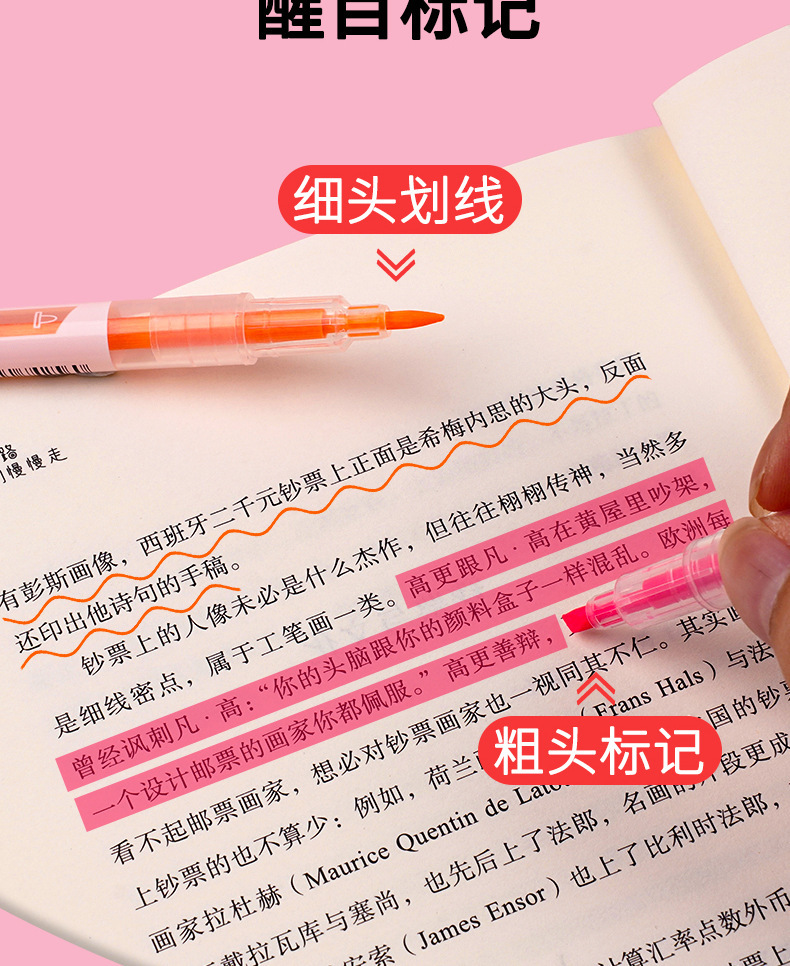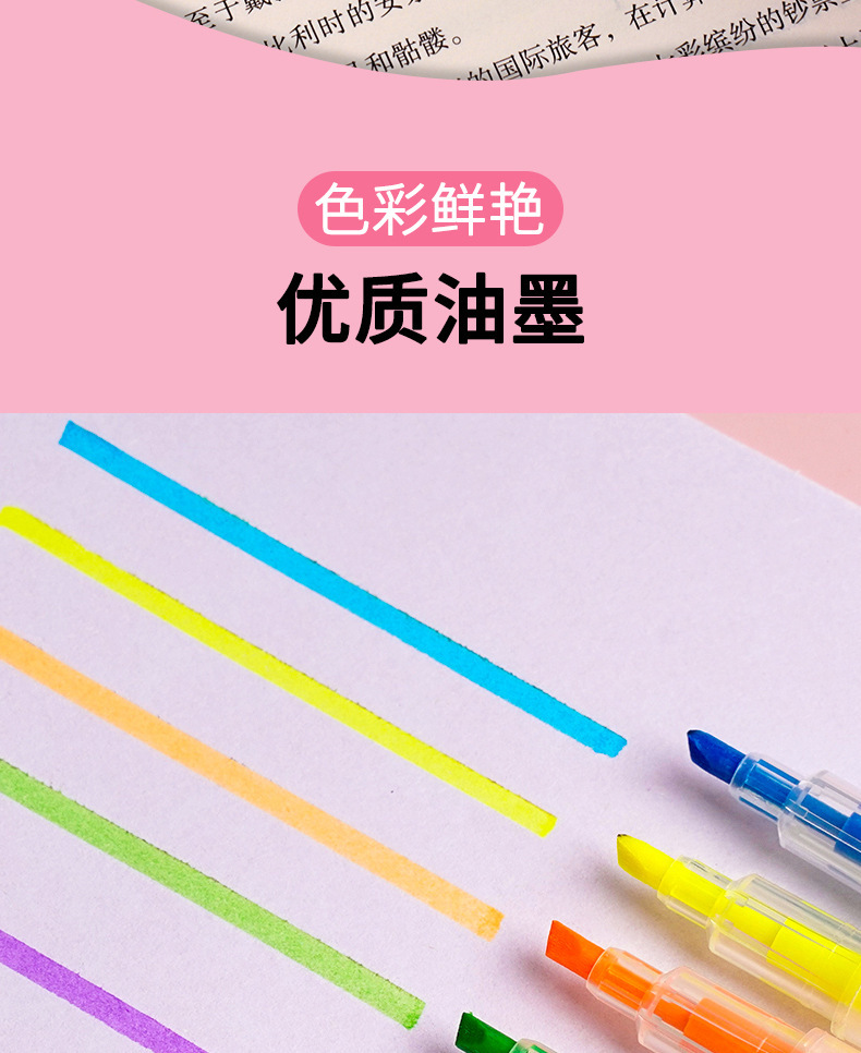 双头荧光笔荧光标记笔6支6色/袋